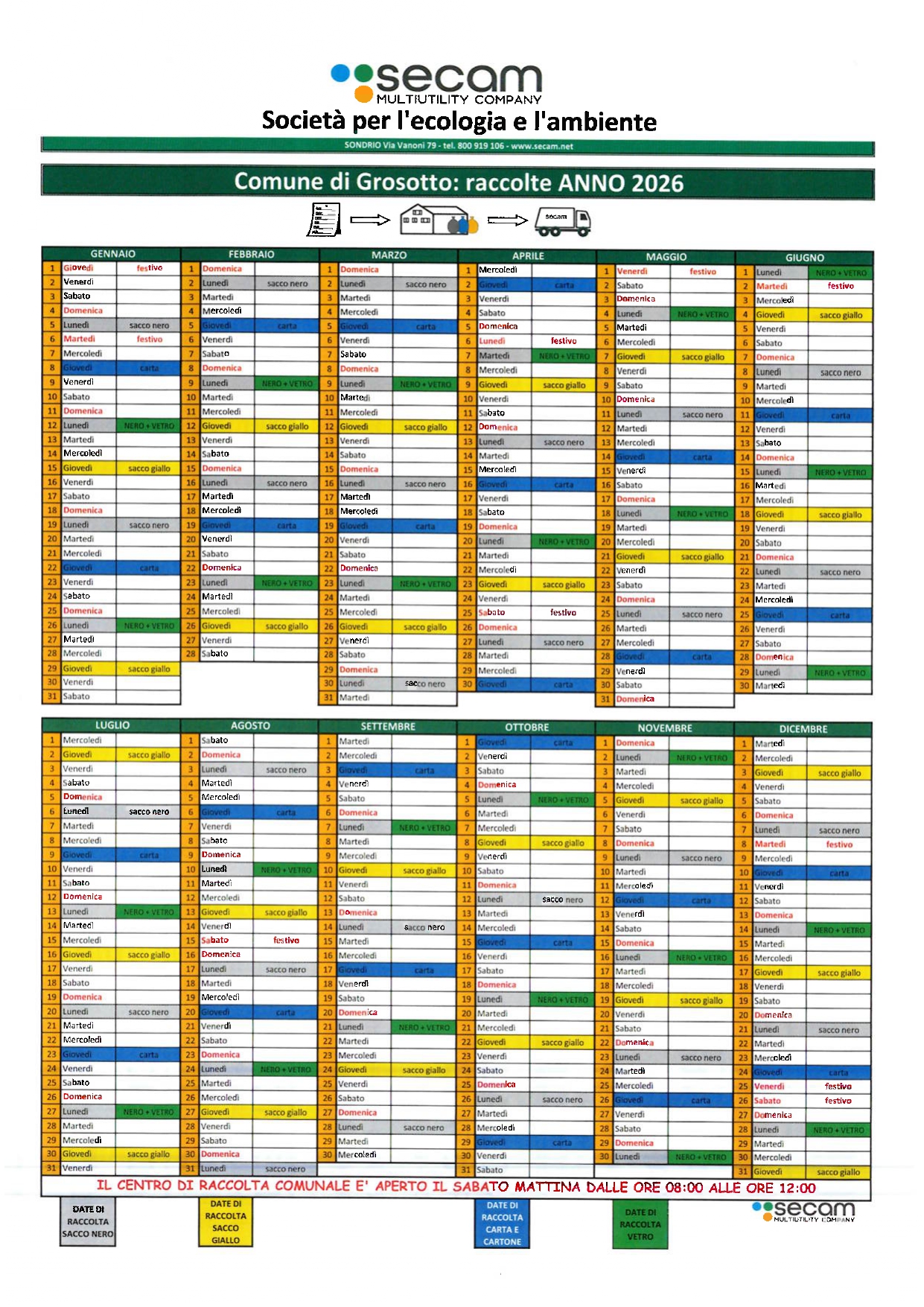 INFORMATIVA E CALENDARIO 2026 RACCOLTA RIFIUTI Dettagli
