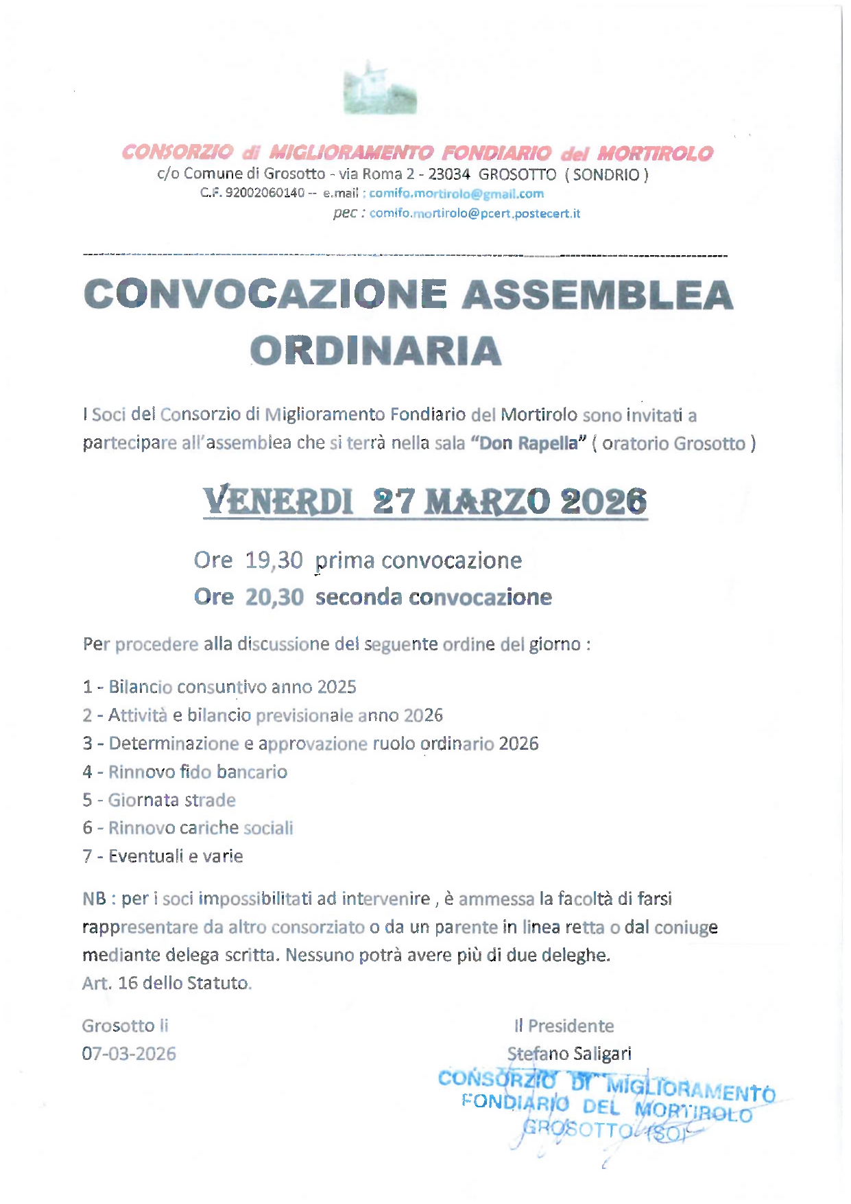 Convocazione assemblea ordinaria dei Soci- Consorzio di miglioramento fondiario del Mortirolo